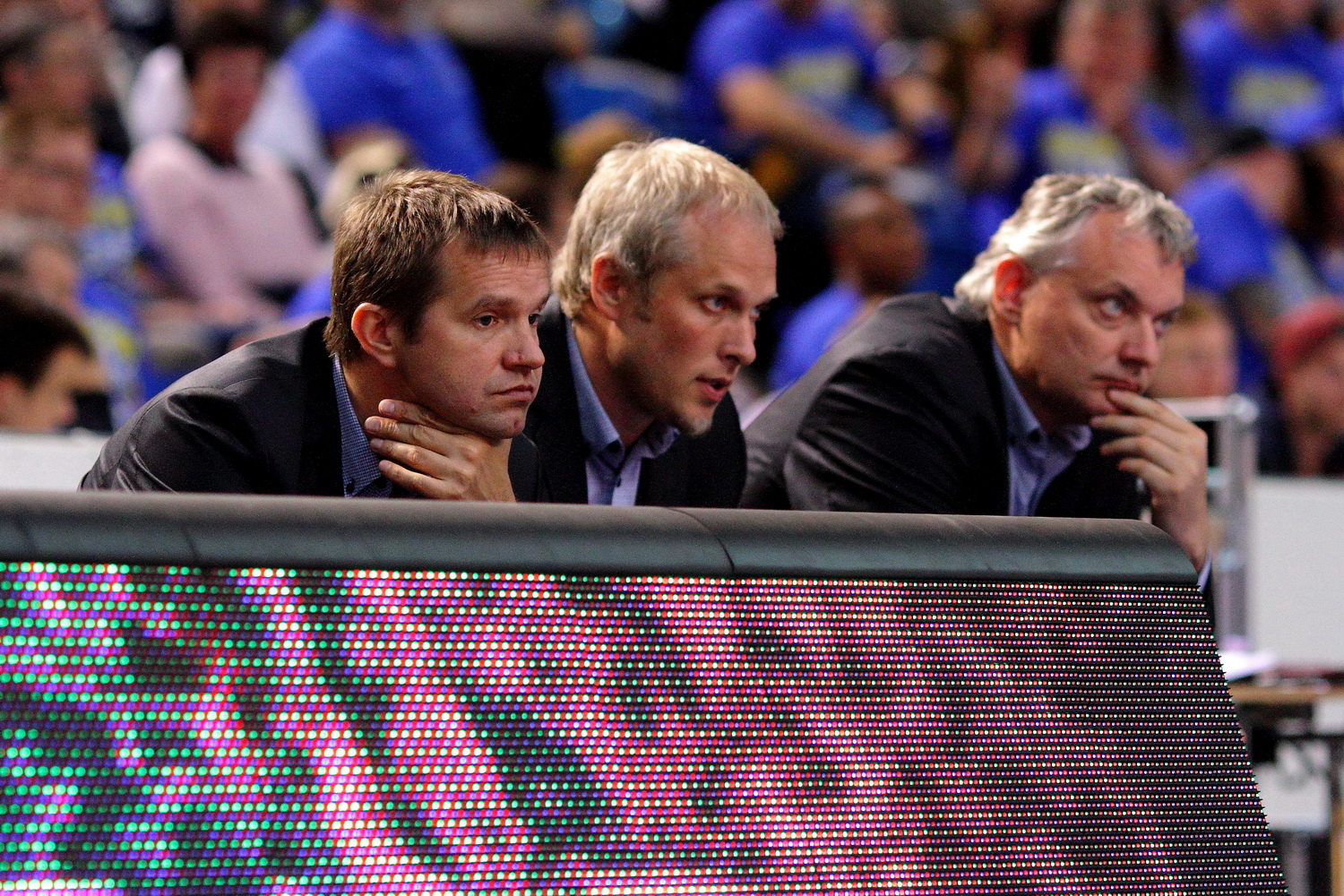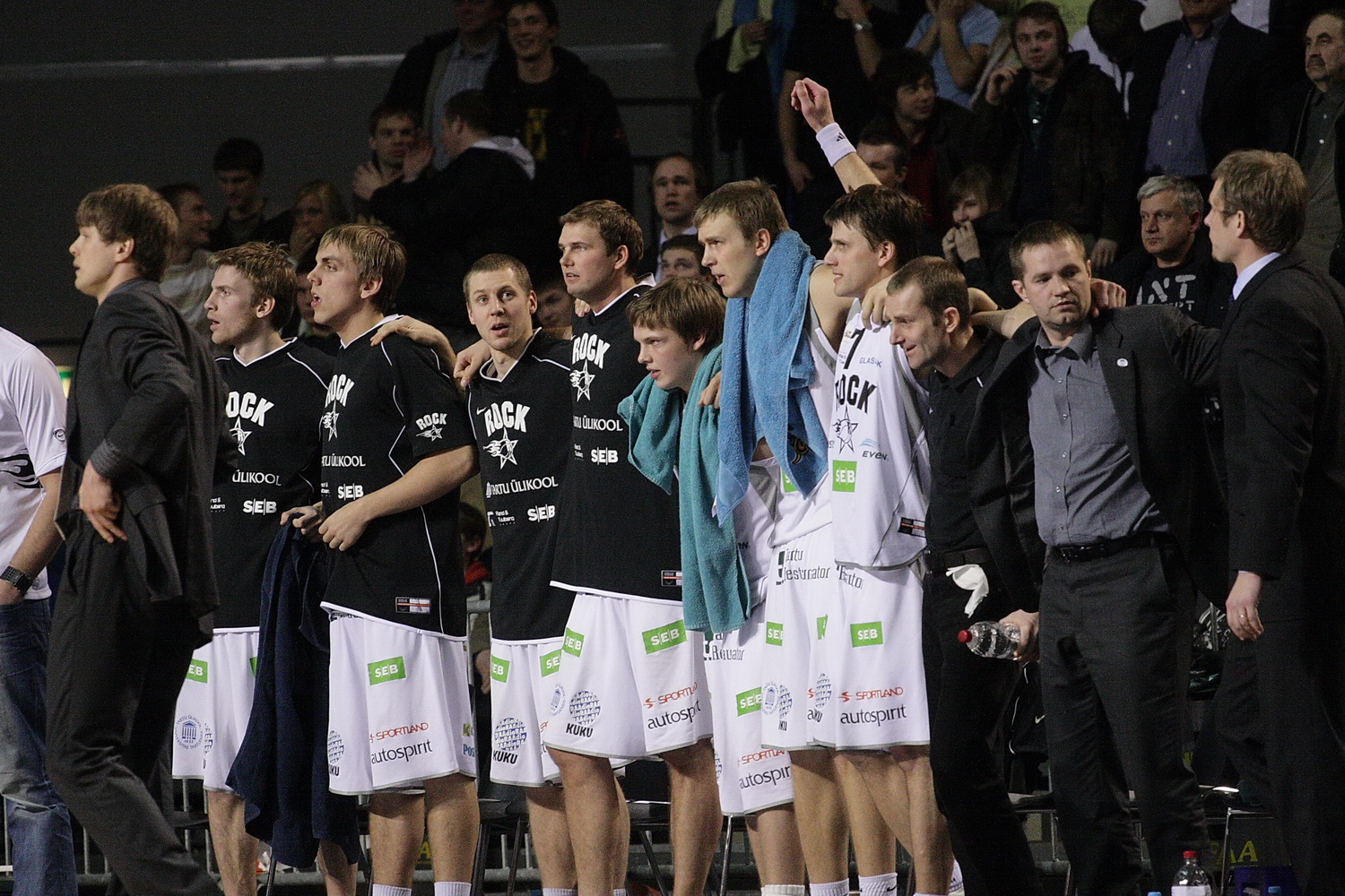 -Meelis Pastak 2014. aastal Tartu Ülikool/Rocki pingil Toomas Kandimaa ja Janar Taltsi vahel | Foto: Siim Semiskar